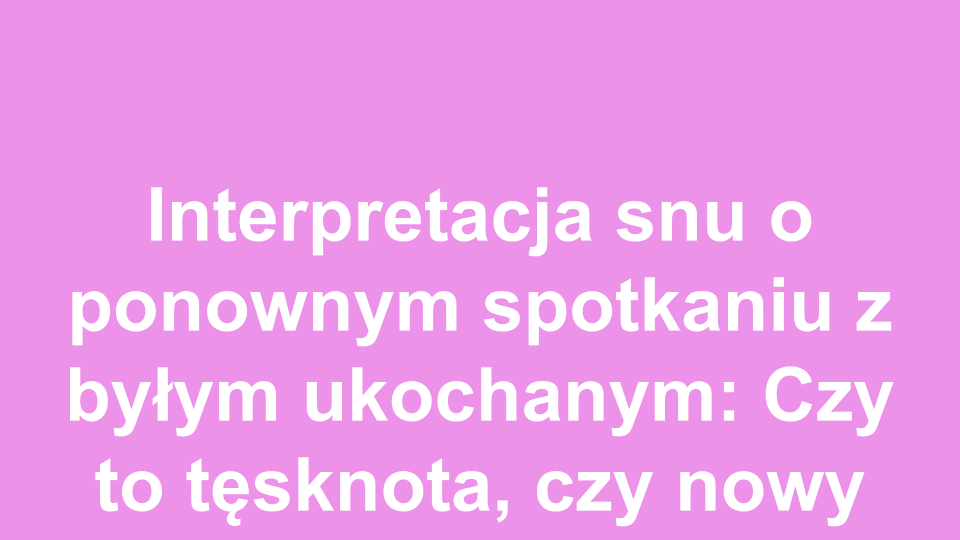Sny mają niezwykłą moc. Czasami potrafią nas zaskoczyć, a innym razem wywołać głębokie emocje. Spotkanie z byłym ukochanym w snach to temat, który często budzi wiele pytań. Czy to oznacza, że wciąż go kochamy? A może to tylko nasza podświadomość, która przetwarza przeszłość? W tym wpisie spróbuję przybliżyć różne interpretacje tego zjawiska.
