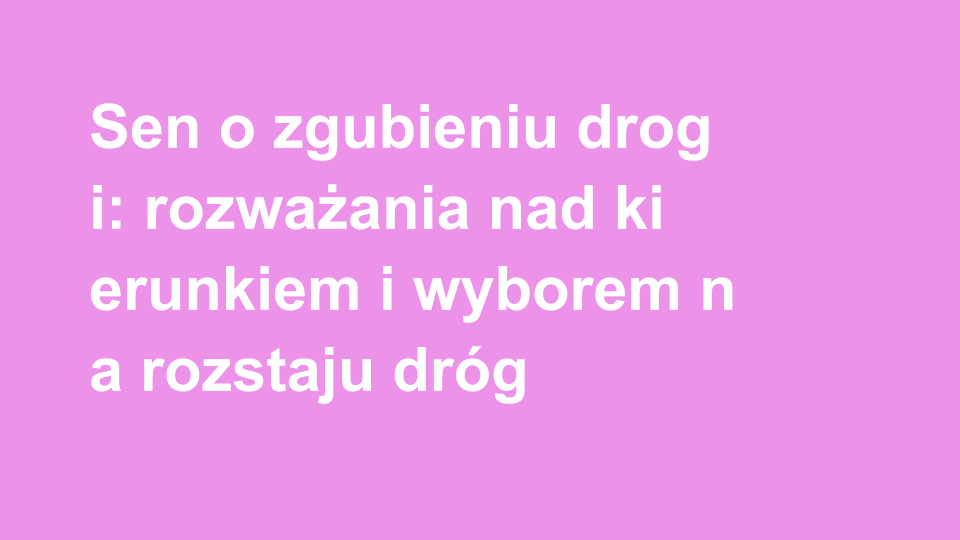 Sny o zgubieniu drogi mogą mieć różnorodne znaczenia. Zazwyczaj symbolizują one poczucie zagubienia w życiu, brak kierunku lub niepewność co do przyszłości. W kontekście psychologicznym, mogą wskazywać na wewnętrzne konflikty, które nie zostały rozwiązane. Bywa, że sny te odzwierciedlają lęki związane z podejmowaniem decyzji. Czasami jednak, zgubienie drogi może być postrzegane jako szansa na odkrycie nowych możliwości, co może być pouczające.